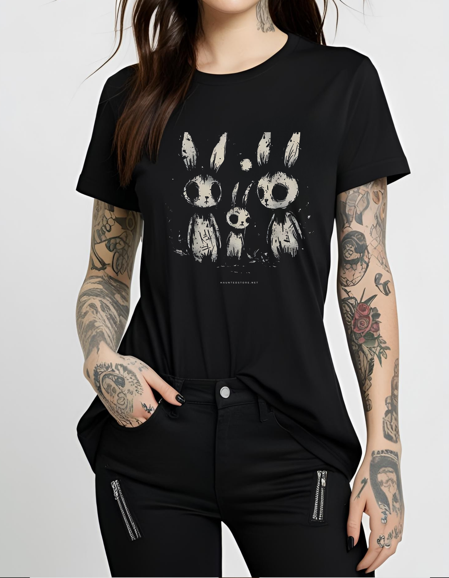 Rock a unique and edgy style with our Creepy Bunnies Unisex T-Shirt in Black! Made from comfortable material and featuring creepy bunny graphics, this t-shirt is perfect for those who want to stand out and make a statement. Express your bold personality with our one-of-a-kind t-shirt.