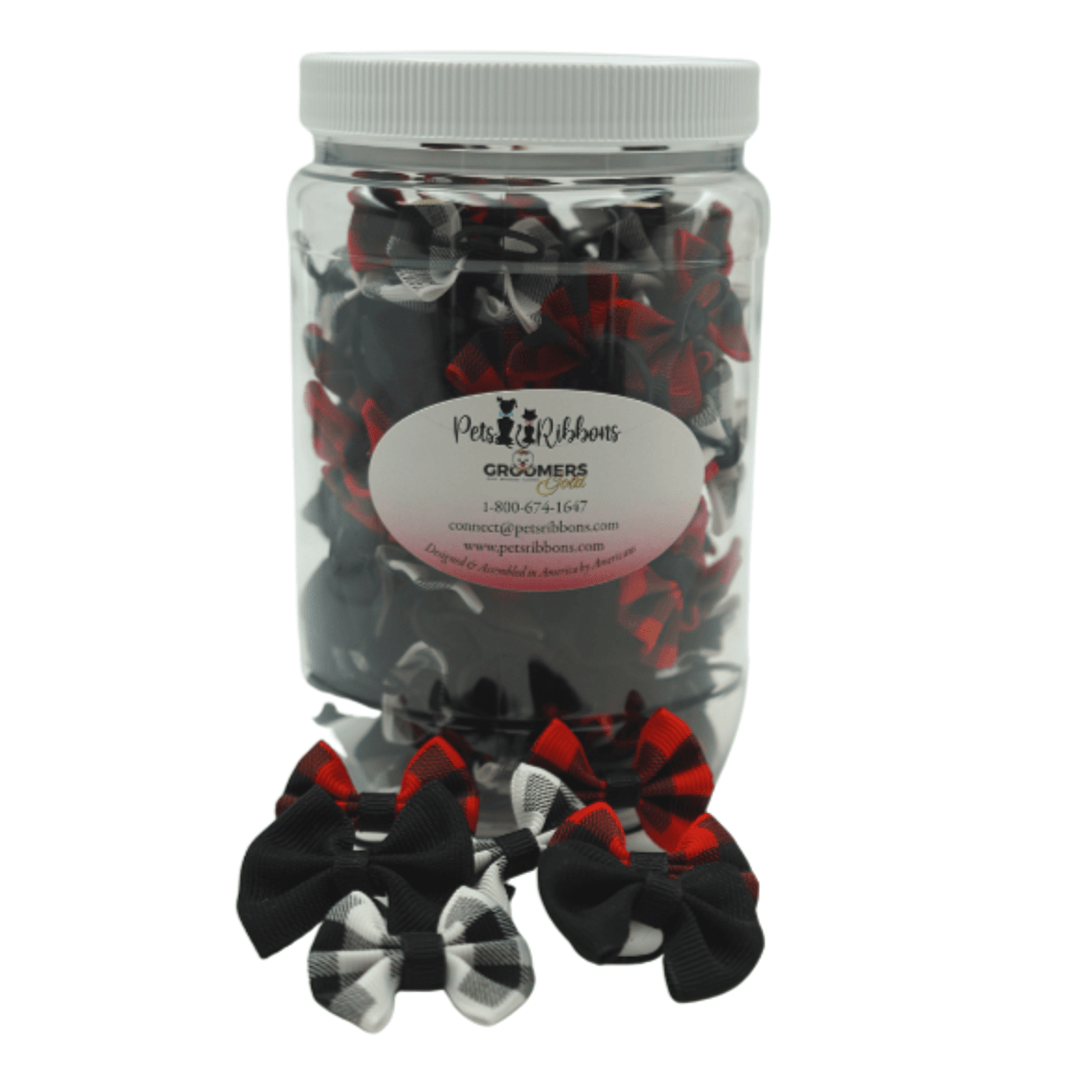 Gothic Check Bow Pet Ribbons - 1.5" Assortment in Jar