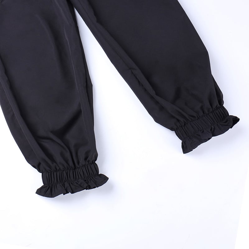 Available in a sleek black color, these track pants not only offer a trendy aesthetic but also provide a relaxed fit that allows for easy movement.